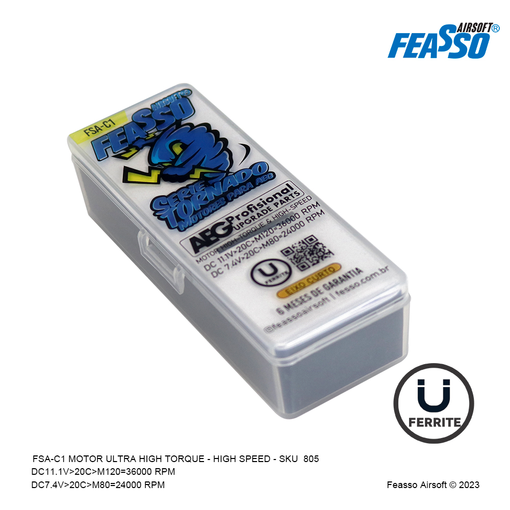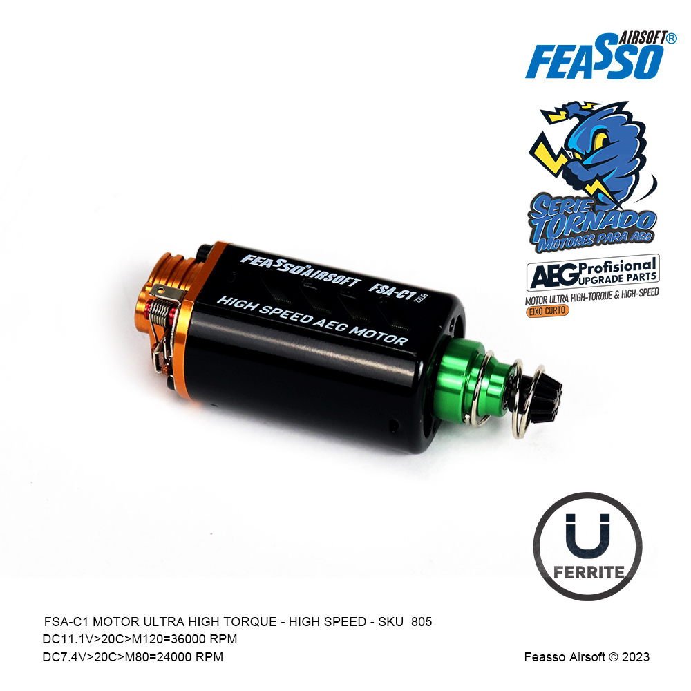 FSA-C1 – Motor Ulta High Torque p/ AEG Serie Tornado – SKU 805 FSA-C1 – Série Tornado “Ultra High Torque” – motor para AEG com alta potência e alta velocidade com chanfros em oco e eixo em CNC para operadores e players de airsoft que buscam mais qualidade, precisão e performance em seus equipamentos!