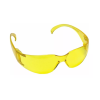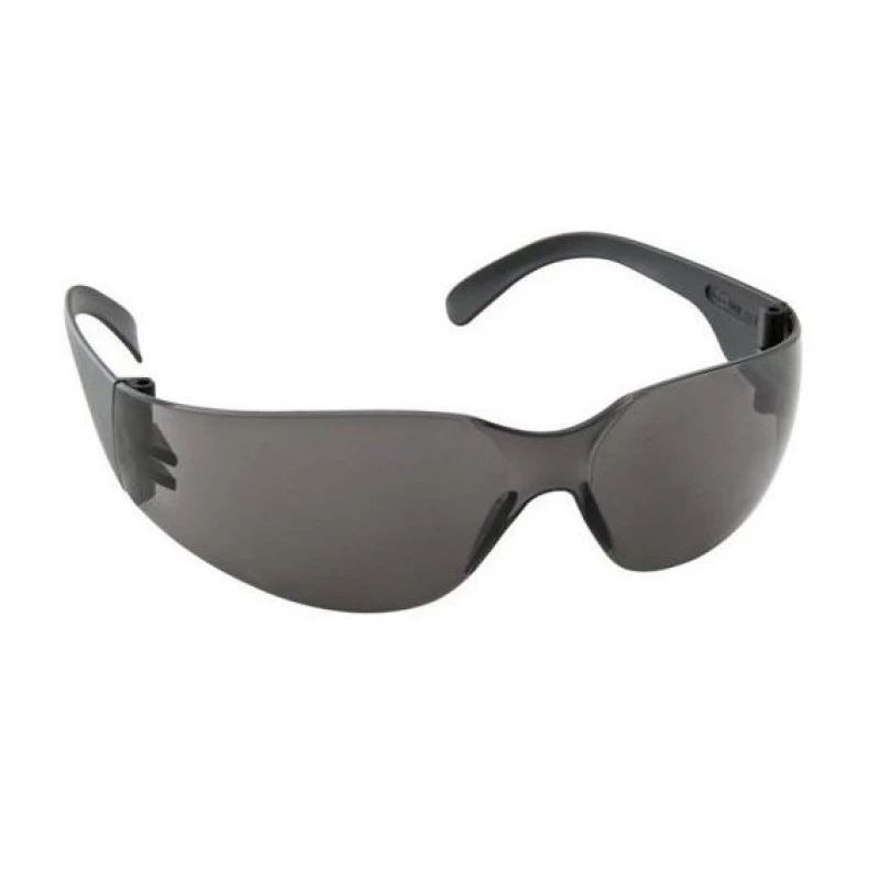 Óculos de segurança confeccionados em policarbonato óptico, lente curva, leve e resistente. Haste de material plástico, tipo espátula maleável.